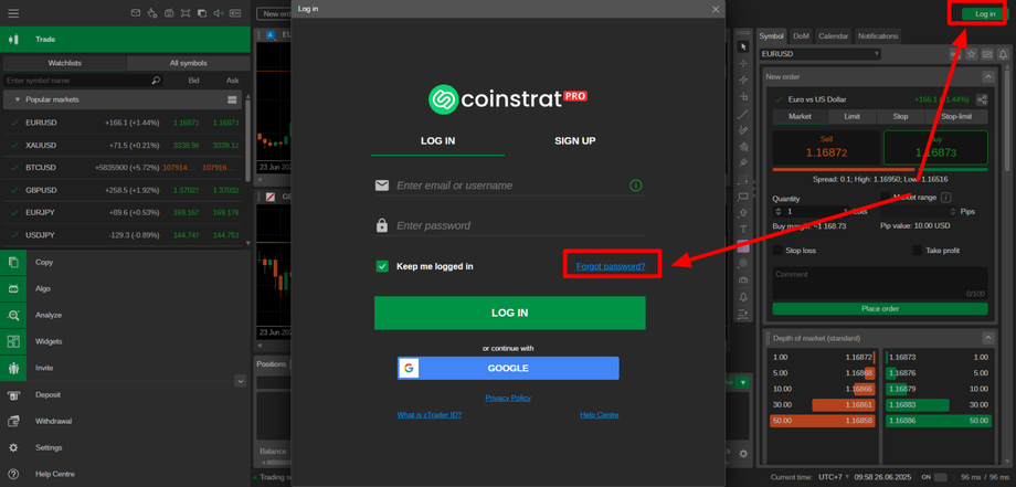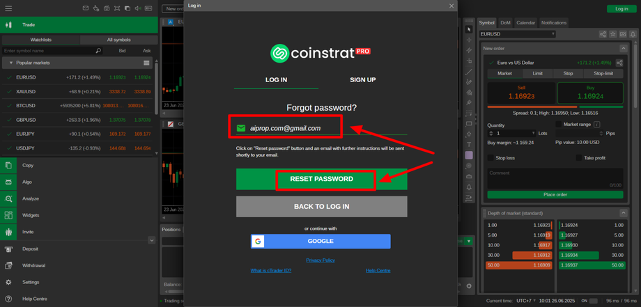At this point, you may establish your new password for accessing your trading account via https://app.coinstrat.pro/